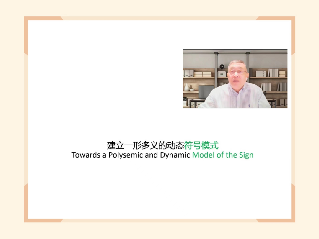 首先,丁尔苏教授介绍了以索绪尔为代表的二元符号模式和以皮尔士为代表的三元符号模式,重点阐释了皮尔士三元符号模式中的“像似符号、指示符号、规约符号”,认为二元符号模式与三元符号模式之间并不存在实质性的区别,二者之间的差异并非不可跨越。随后,丁教授以图片、词语的多义为例,指出了索绪尔二元符号模式的不足,认为有必要对二元符号模式进行改写。最后,丁教授介绍了一形多义的动态符号模式,认为只有借助多项联结的动态模式才能够满意揭示人类符号活动的实际情况。