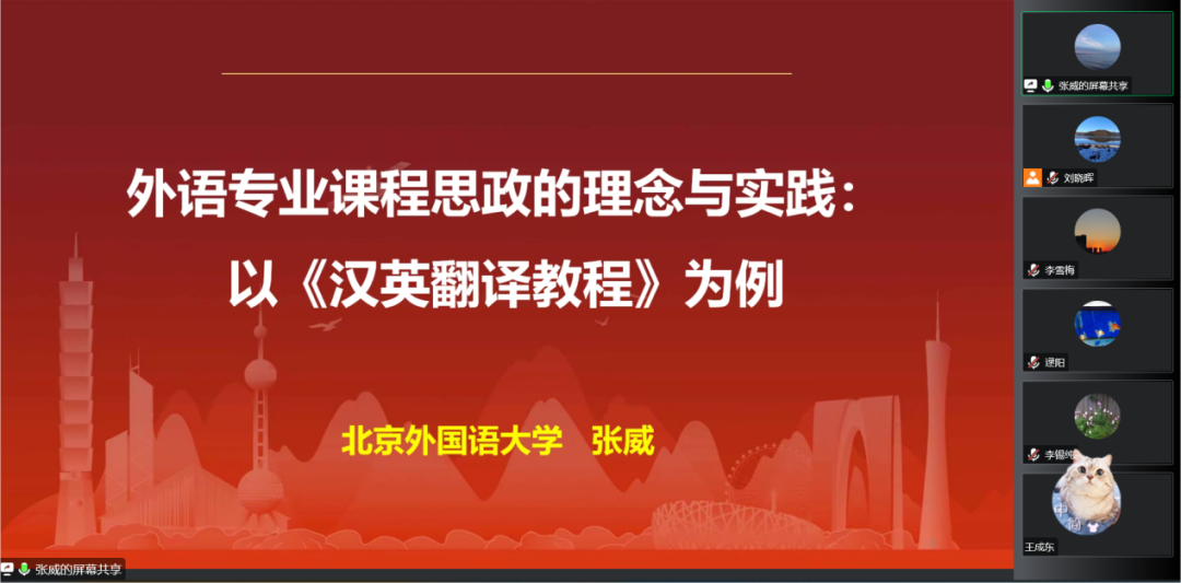 11月24日,为认真贯彻立德树人根本任务,深入开展课程思政改革创新,切实推进“三进”工作,英语学院通过腾讯会议的方式举办研究生导师专题培训会。本次导师培训的主题是“外语专业课程思政的理念与实践”,北京外国语大学张威教授应邀担任主讲嘉宾。本次培训由英语学院副院长刘晓晖主持,副院长曲涛、王成东以及研究生导师参加了此次培训。