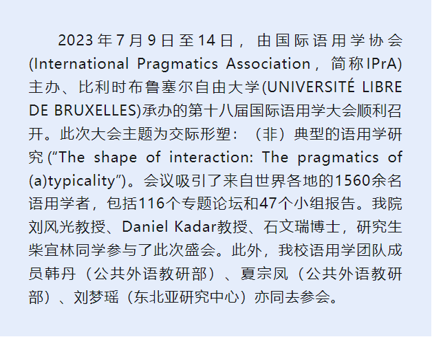 学术活动 | 我院师生赴比利时参加第十八届国际语用学大会