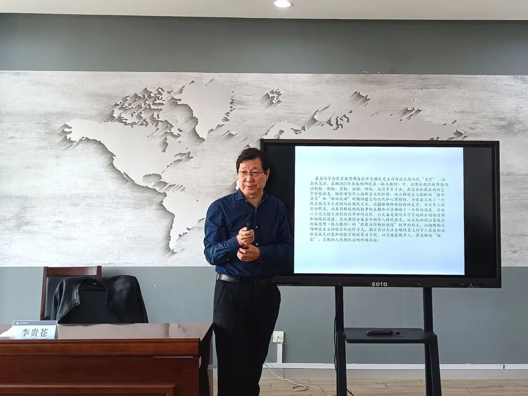 5月9日,大连外国语大学启航学者李贵苍教授应我校科研处和英语学院邀请,为我院师生做了题为“为‘孤儿散仔’立传:华裔美国作家伍慧明的创伤叙事”的学术讲座。本次讲座由学院王绍平教授主持,文学研究所部分成员、研究生及本科生共同聆听了此次讲座。