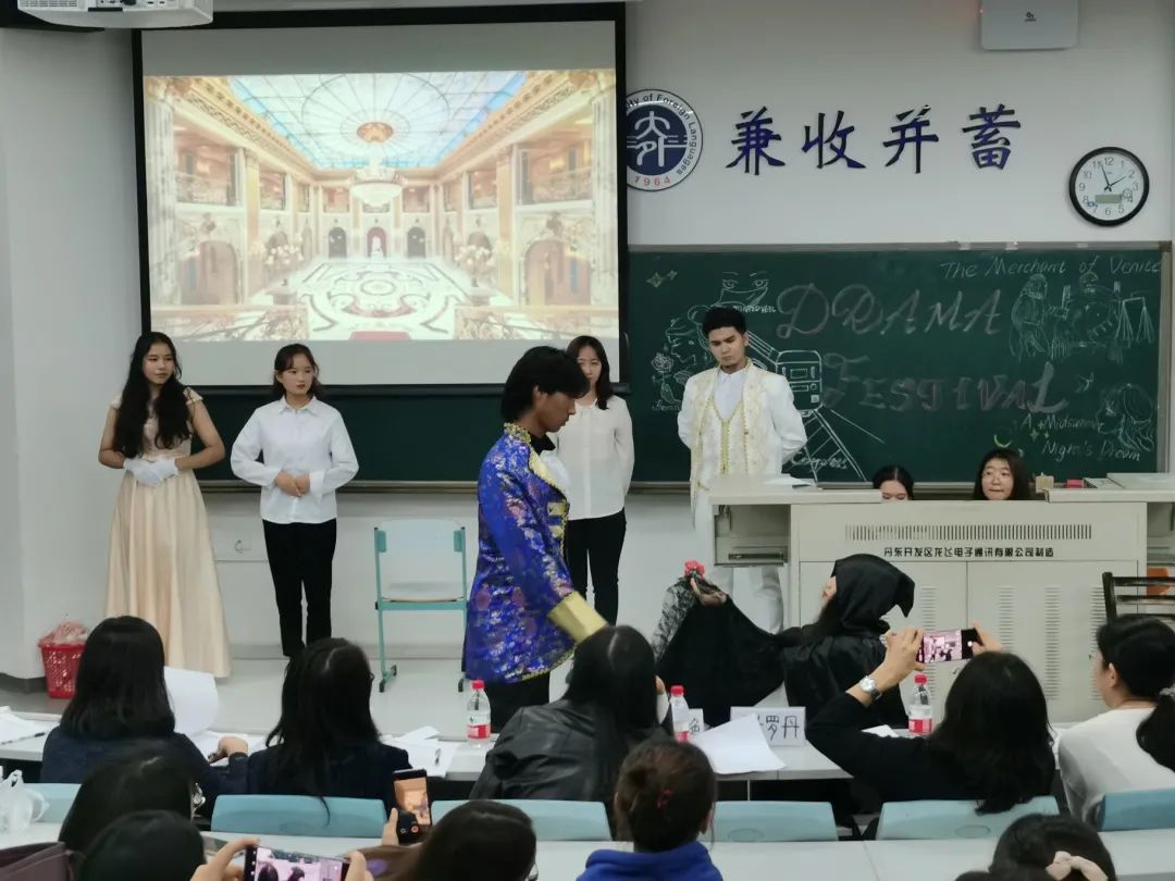 2019级戏剧节复赛在如潮掌声中开幕。首先是六班带来的The Necklace为我们讲述了虚荣心换来十年辛劳的故事;十班同学演绎的Romeo and Juliet再现了千古爱情绝唱;五班同学精心筹备的Medea将我们带回古老而遥远希腊国度,公主美狄亚被伊阿宋始乱终弃的凄苦心路让观者无不为之动容;十四班呈现的The Merchant of Venice情节更是跌宕起伏,演员们各个表现不俗,团体取得并列一等奖的优异成绩;七班同学出演的德国寓意剧The Good Person of Szechwan发人深省;十五班将经典剧目Pride and Prejudice搬上舞台;四班的A Midsummer Night’s Dream上演了一出唯美又浪漫的闹剧;十三班同学带来的A Good Man from Sichuan服装与情节皆令人耳目一新;一班同学带来了莎士比亚四大喜剧之一的Twelfth Night;而后八班同学带来Thunderstorm;接着出场的三班同学以女巫的吟唱开启了Macbeth;二班将莎翁的经典讽刺性喜剧The Merchant of Venice呈现在舞台上;最后九班同学用他们精湛的演技演绎出了Death of a Salesman 中小人物的悲剧性一生。
