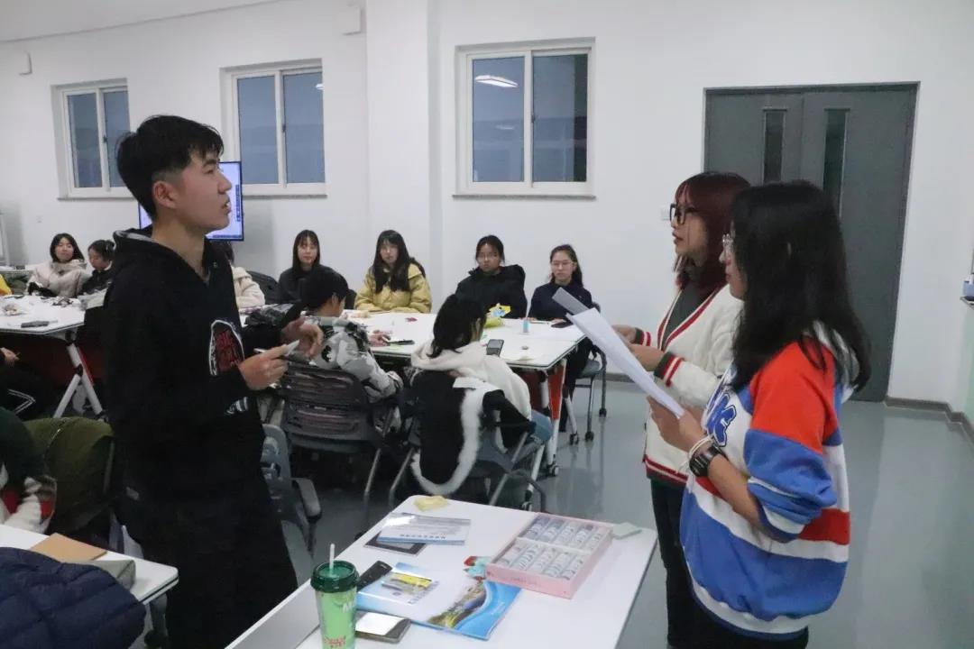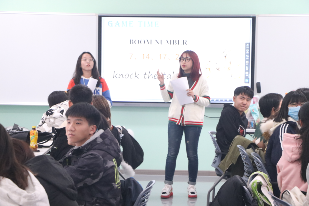 活动之初,主持人对每一位同学的到来表示欢迎,让同学们感受到了浓浓的暖意。为了使同学们在放松身心的同时提高英语能力,本期英语角在小游戏“Boom number”的渲染下热烈而有序地展开。清脆的敲桌声与欢快的笑声,激动人心的数字接龙,加之美味的零食……明亮的教室显得格外温馨。