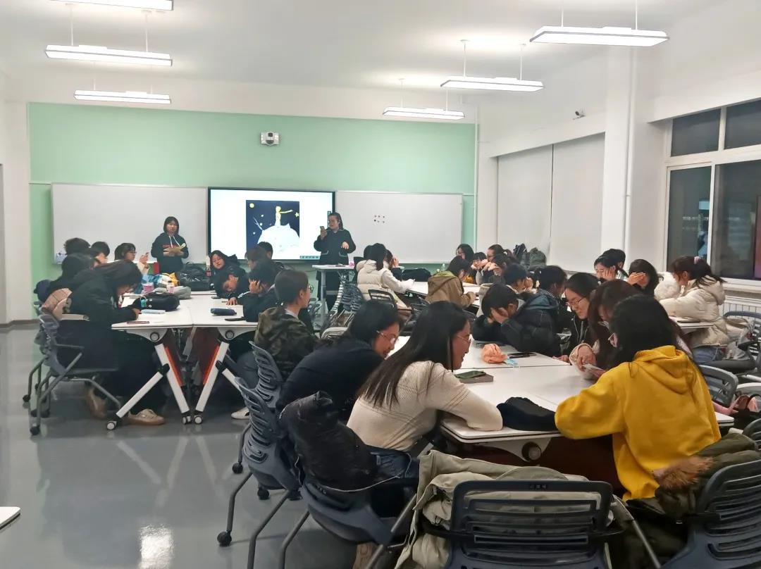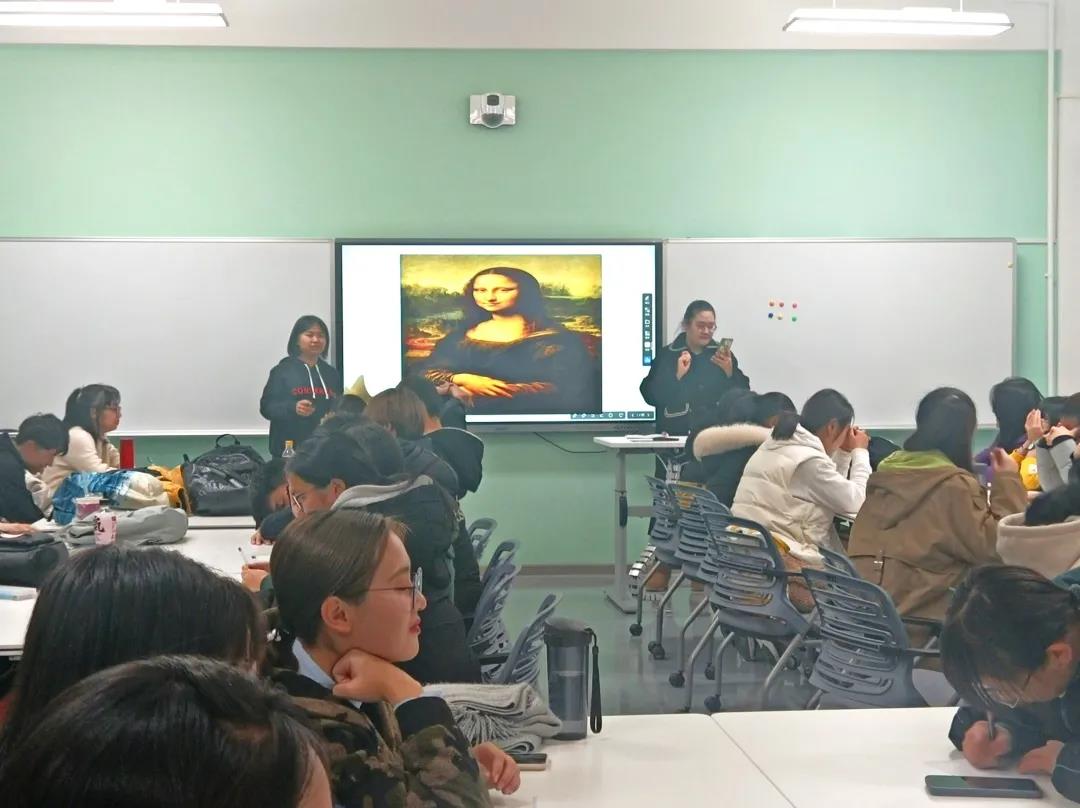 活动初始,主持人带领大家做名为Blindfold Painting的暖场小游戏,每组同学根据自己的理解画出屏幕中所显示的图片,由最后一个同学猜测。同学们天马行空,尽情发挥。蒙娜丽莎、小王子、哈利波特等形象出现在大家的画笔下,同学们积极参与,热情高涨。