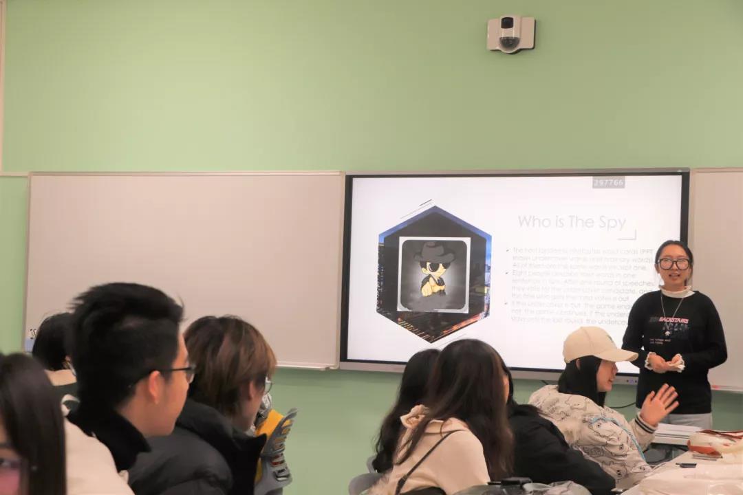 随后,“谁是卧底” 游戏重磅来袭。面对疑团重重的身份,Who is the spy?同学们在寻找同伴的同时,也在暗中寻找隐藏的卧底,活动氛围渐渐被推向高潮。
