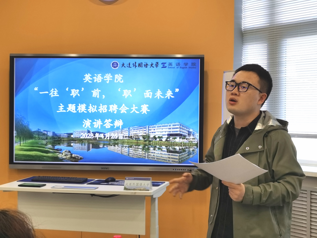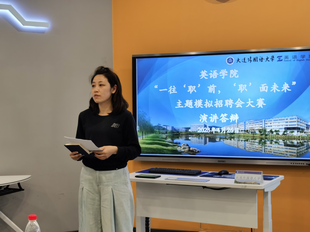4月26日,“一往‘职’前,‘职’面未来”主题模拟招聘比赛的演讲答辩环节于VR实训中心举办,特邀辽宁伯乐帮科技有限公司总裁张晓婷女士作现场点评与指导,英语学院团委书记曲镜达、2019级辅导员吴曼、2020级辅导员王艺凝、2021级辅导员达尼亚尔江·亚力坤江共同担任评委老师。