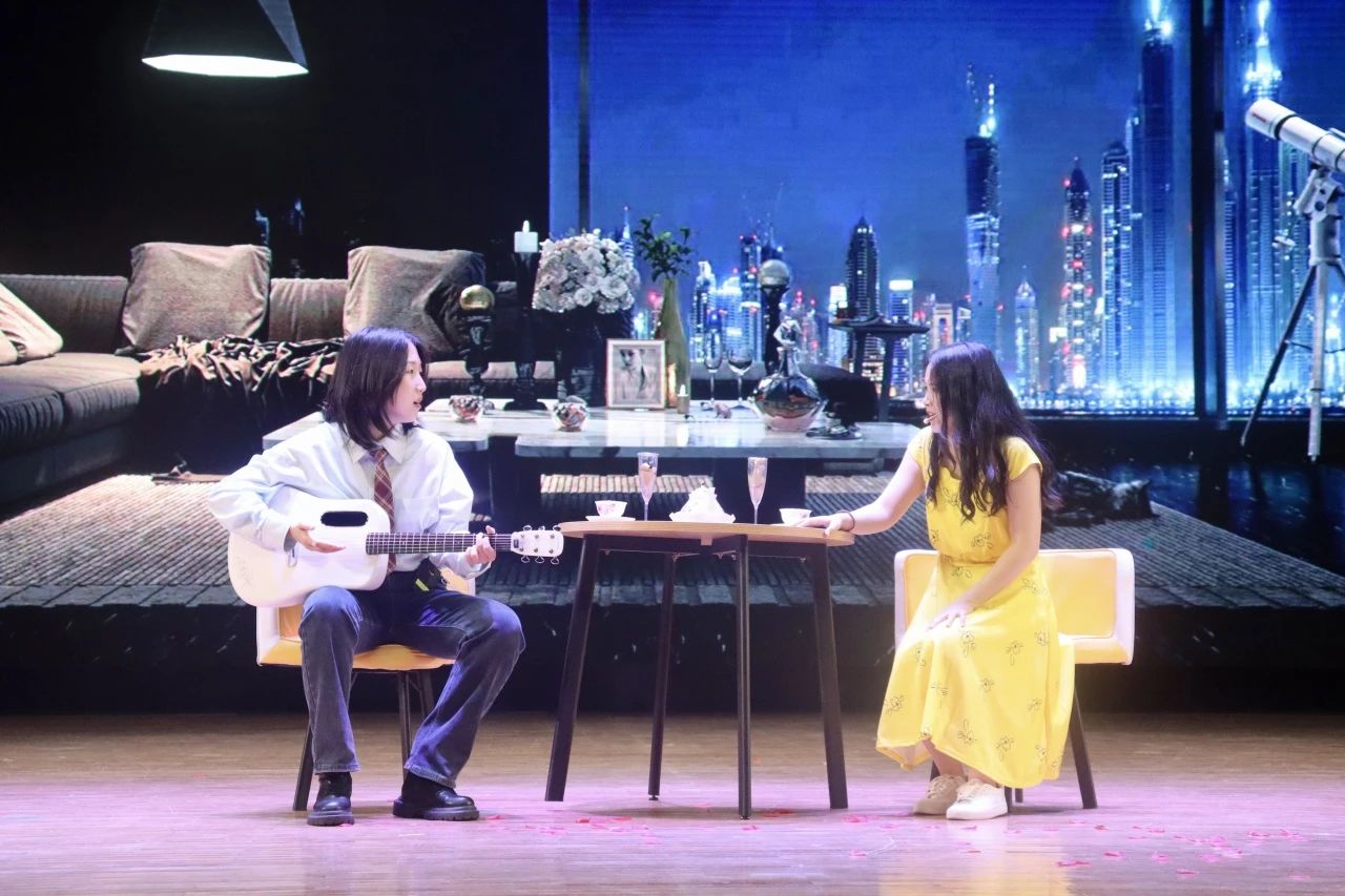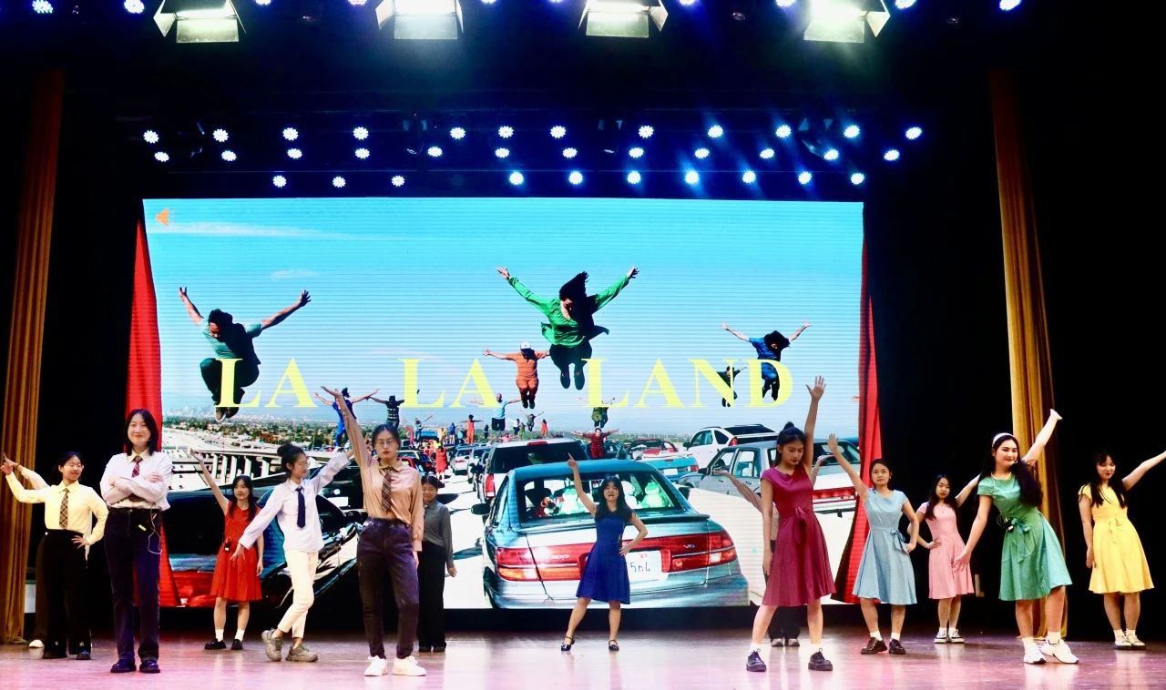 中场环节过后,研究生剧组表演了深受观众喜爱的剧目《爱乐之城》,描绘了爵士钢琴家赛巴斯蒂安和女演员米娅在洛杉矶这个充满梦想与机会的城市相识,在种种挑战和抉择面前鼓励彼此勇敢追求自己梦想的故事。他们轻松惬意的表演风格和欢快自在的舞台呈现为本场演出增添了无限魅力。