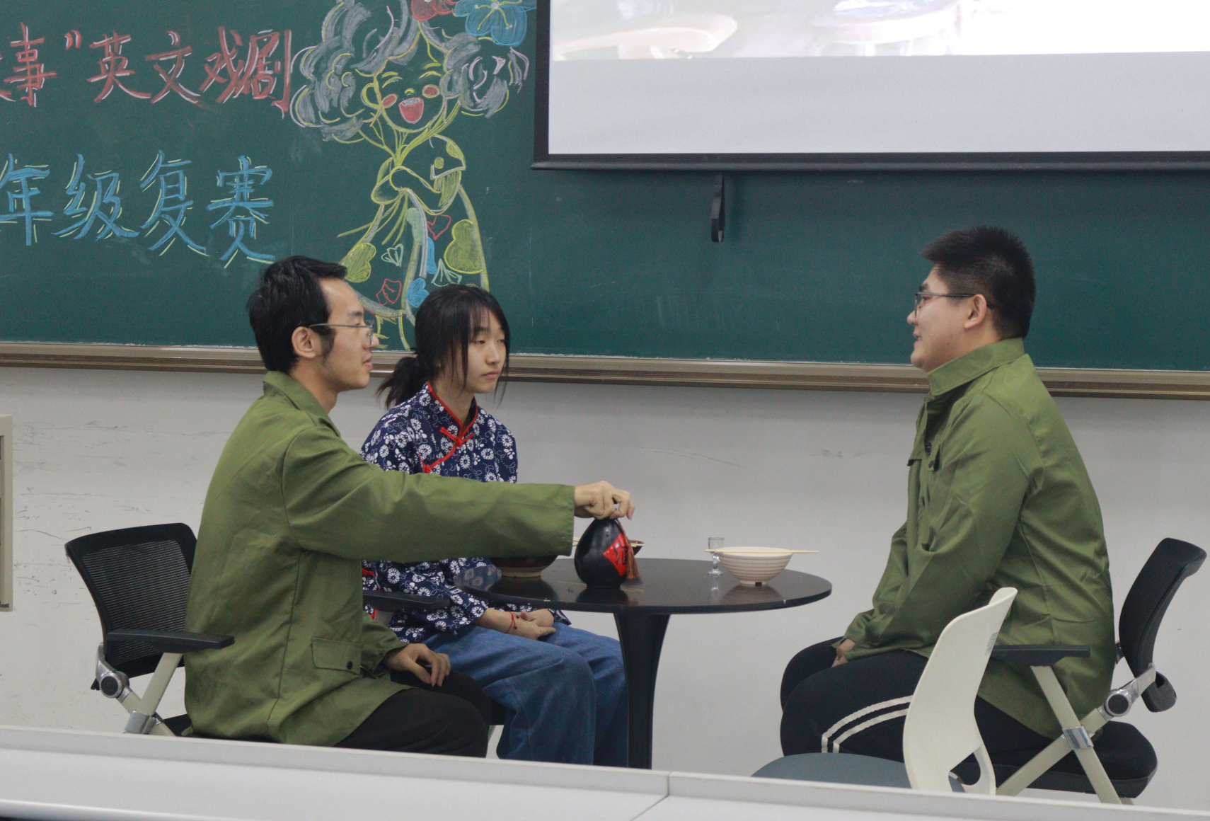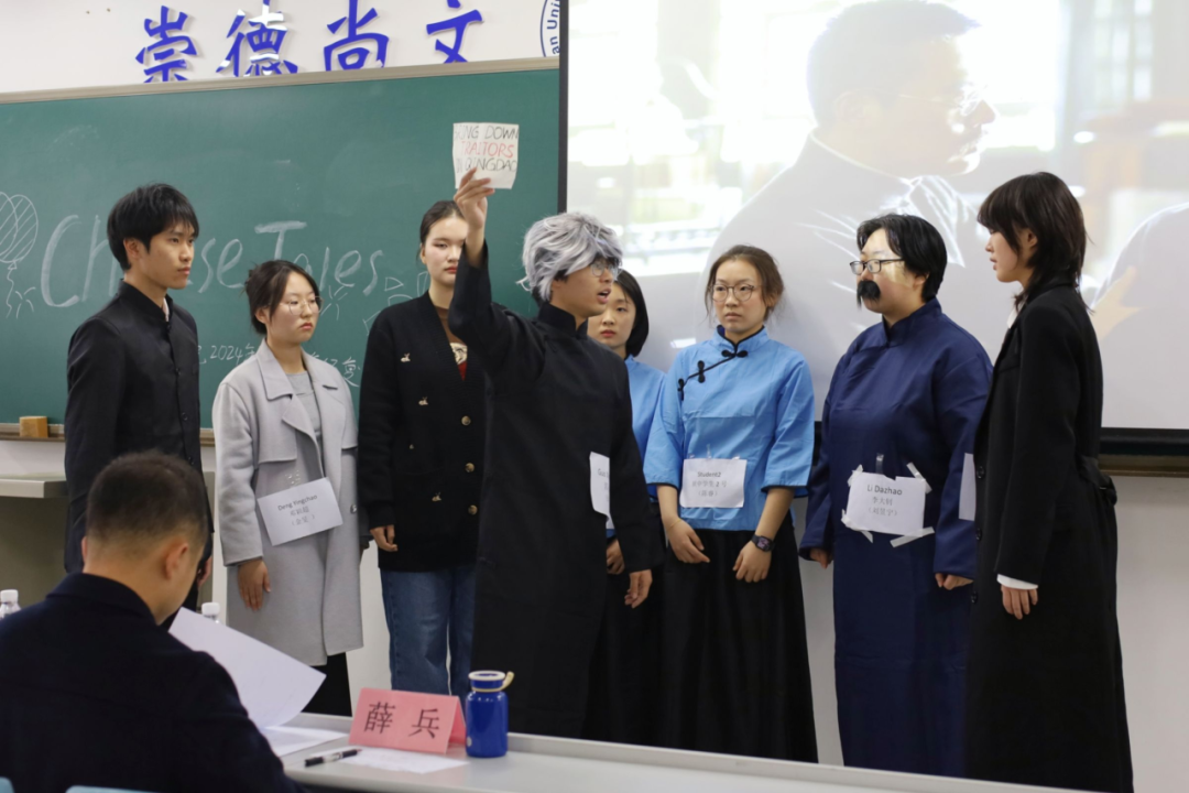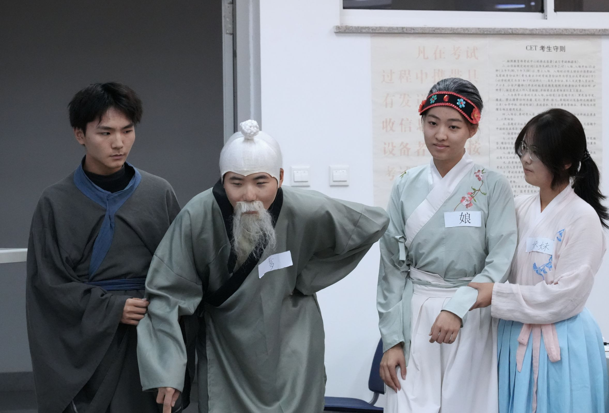 2023级1班为大家呈现的经典剧目《茶馆》节选片段拉开了505室比赛的帷幕,他们以茶馆为中心,演绎了旧社会里不同人物的悲惨遭遇,深刻地揭露了黑暗的旧社会本质。