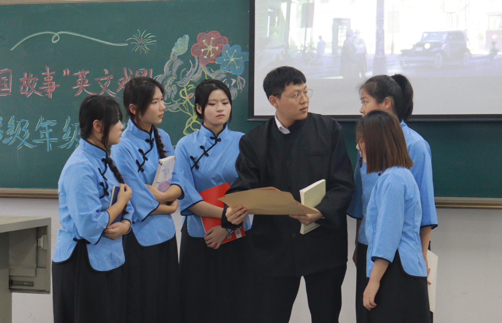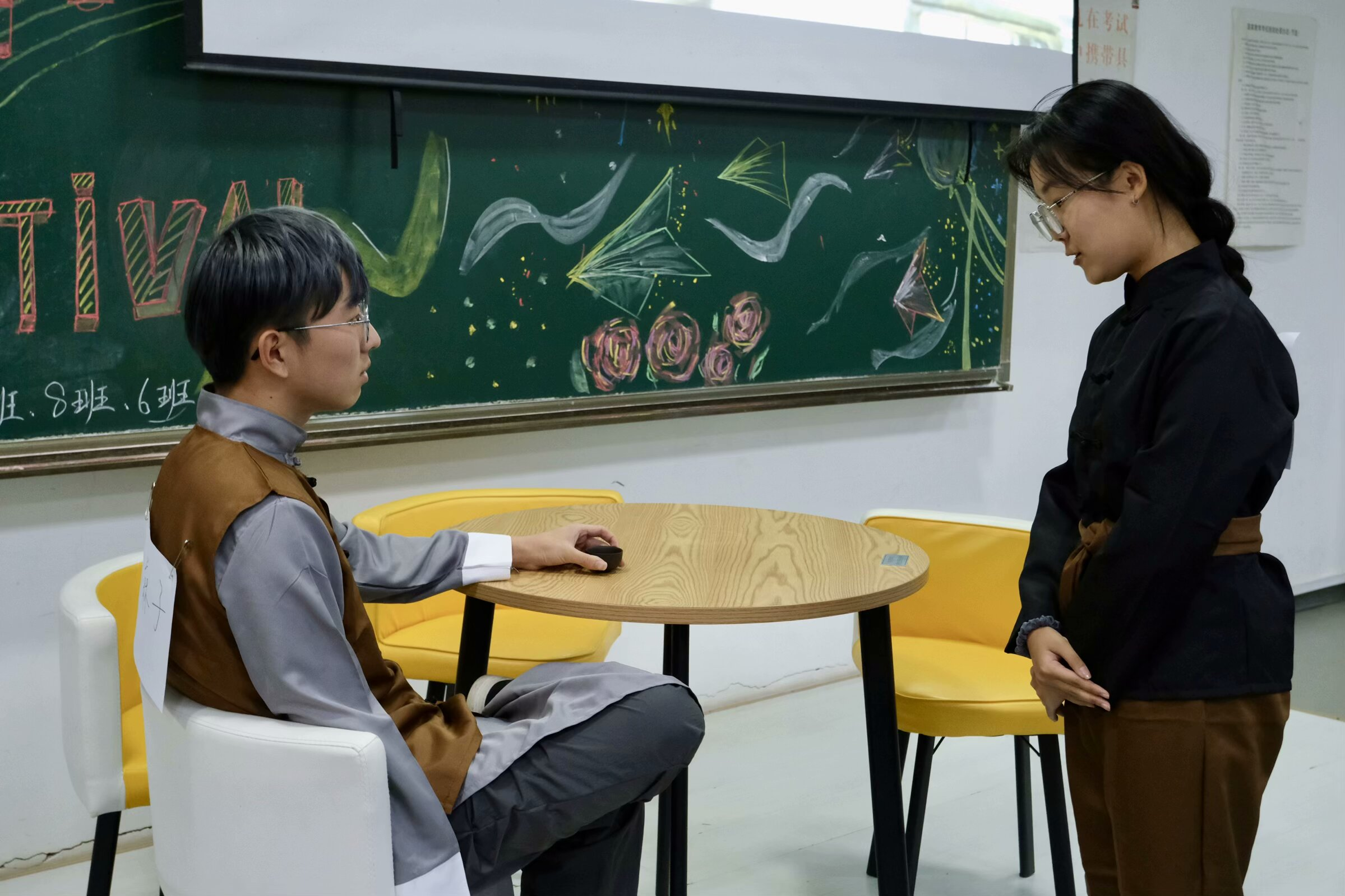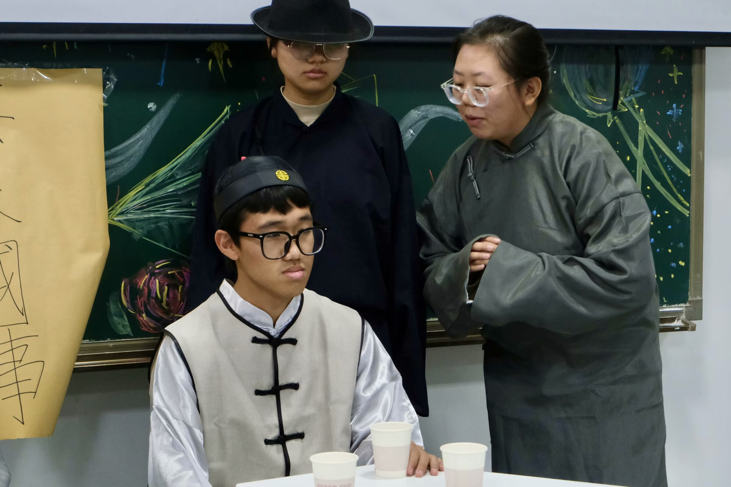 2023级1班为大家呈现的经典剧目《茶馆》节选片段拉开了505室比赛的帷幕,他们以茶馆为中心,演绎了旧社会里不同人物的悲惨遭遇,深刻地揭露了黑暗的旧社会本质。
