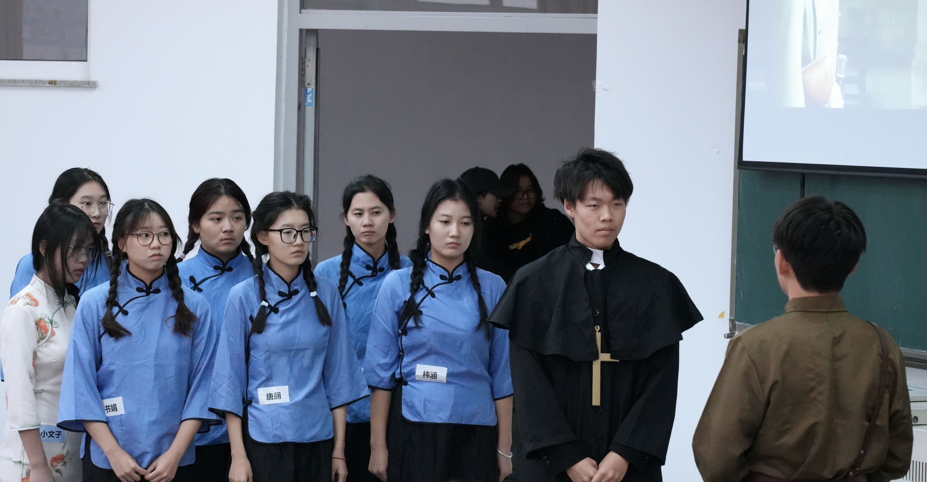 中场休息结束后,下半场的表演由2024级11班的同学拉开序幕。他们带来的剧目《金陵十三钗》将战争带来的痛苦与灾难和人性的善良与勇敢进行对比,传递出了对和平的无限向往之情。