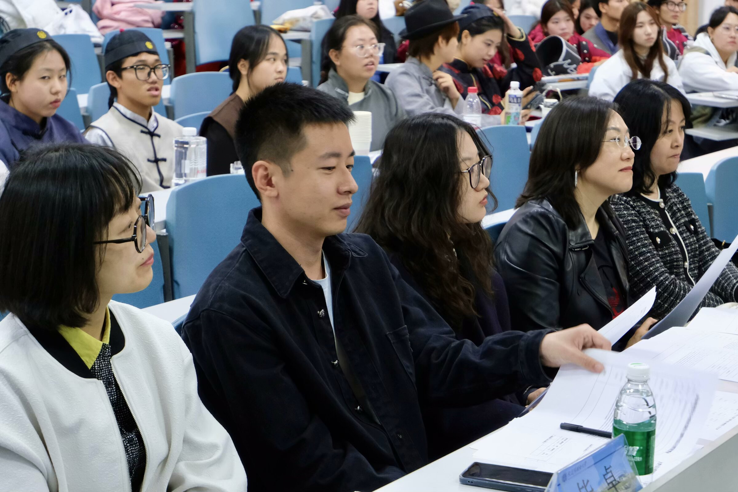 2024级年级复赛分为单数和双数两个组别,于明德楼305教室和101教室同时进行。英语学院教师石文瑞、王澍、刘雪莲、王威、李莉莉担任单数组评委,赵秀艳、刘丹、毕卓、张罗丹、黄艺欣担任双数组评委。