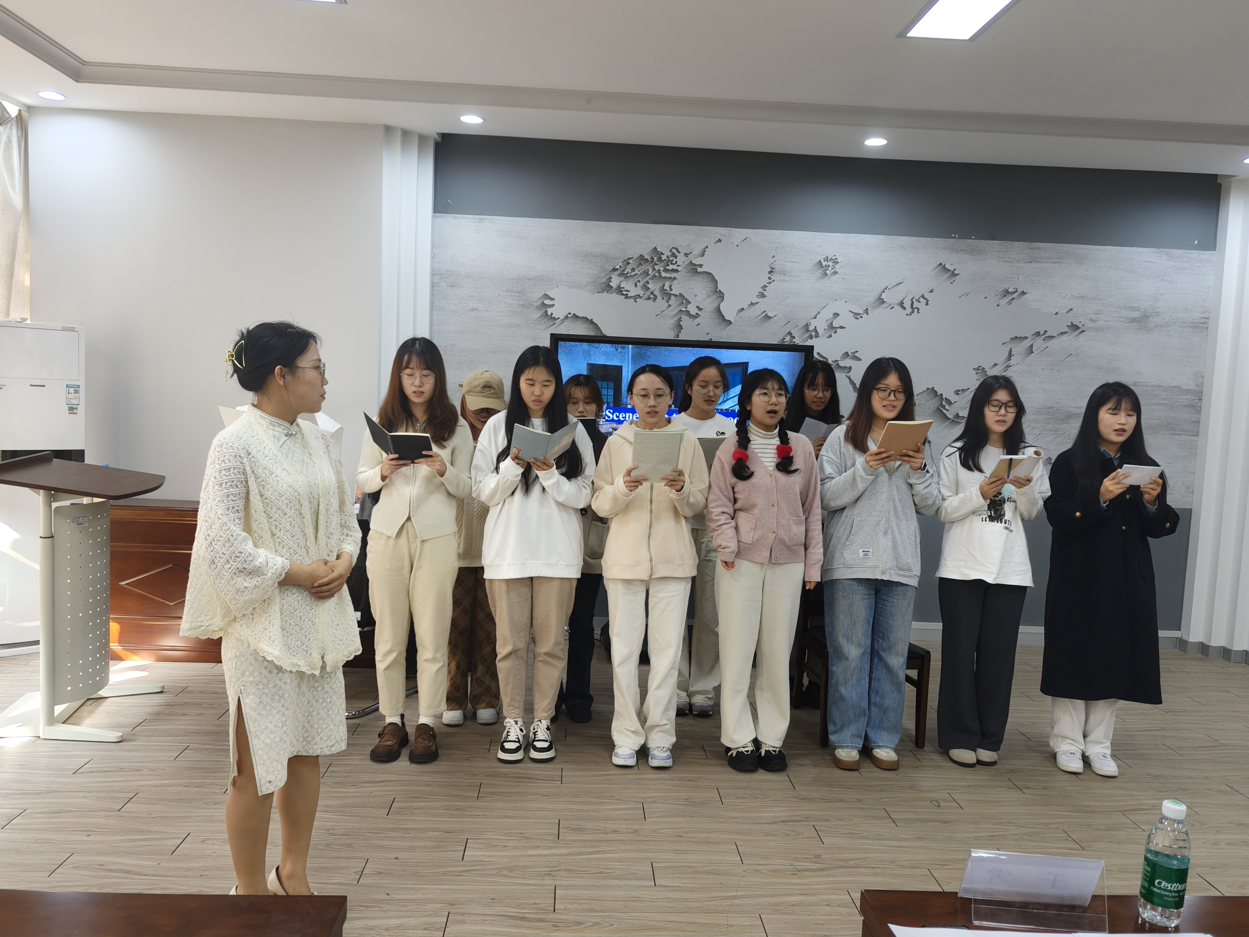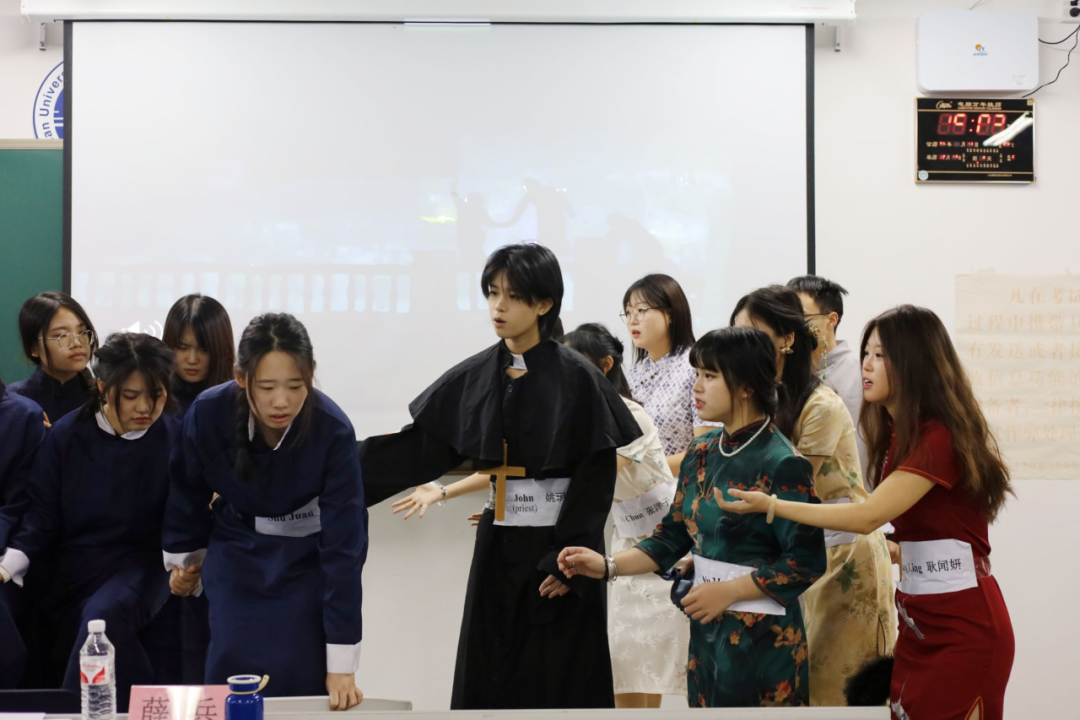 2024级8班同样演绎了《金陵十三钗》。他们以全新视角打开这段历史,在生死抉择的漩涡中,国人的命运紧紧交织。他们在废墟之上谱写一曲震撼灵魂的悲歌,让在场老师和同学们深刻体会到了那一段刻骨铭心的传奇。