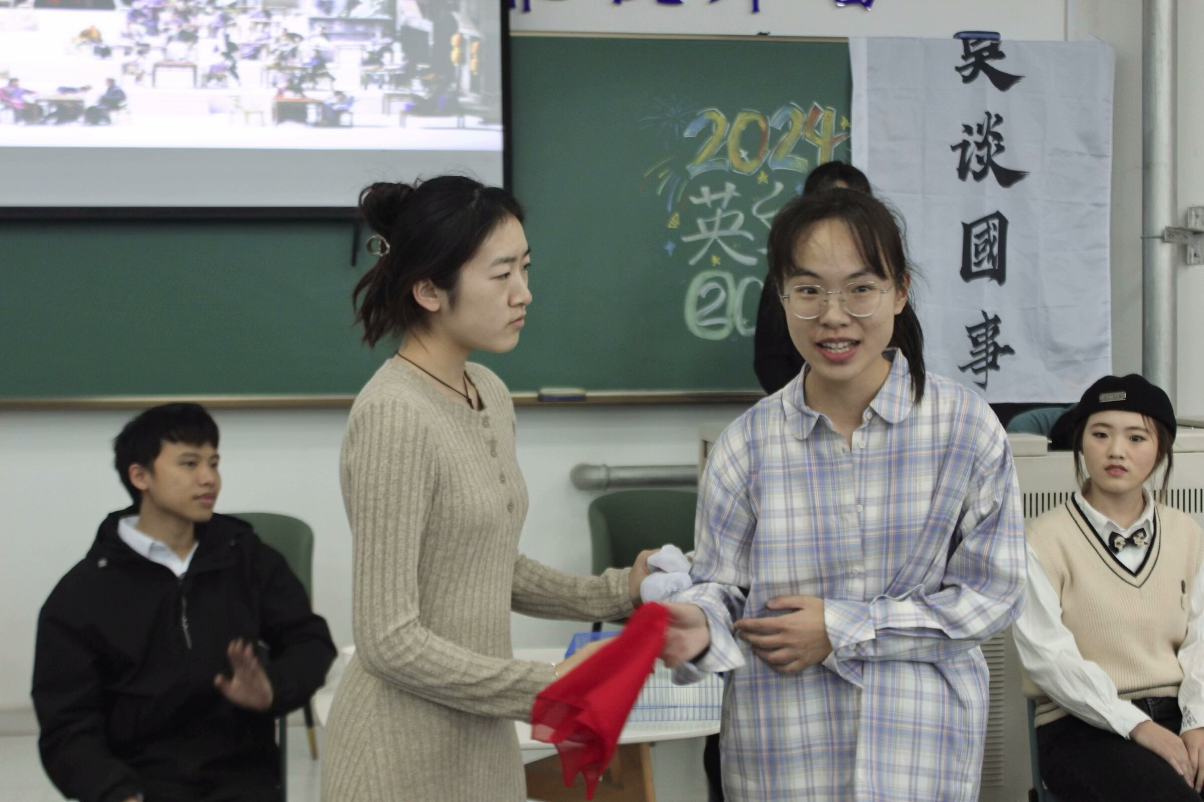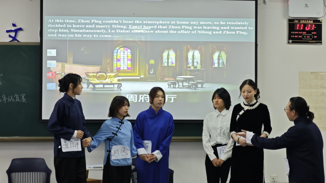 下半场率先登场的是2023级11班的《喜福会》。他们的表演极具感染力,展现出了中国母亲与移民女儿之间的冲突与爱,以自然灵动的表演赢得了老师和观众的喝彩。