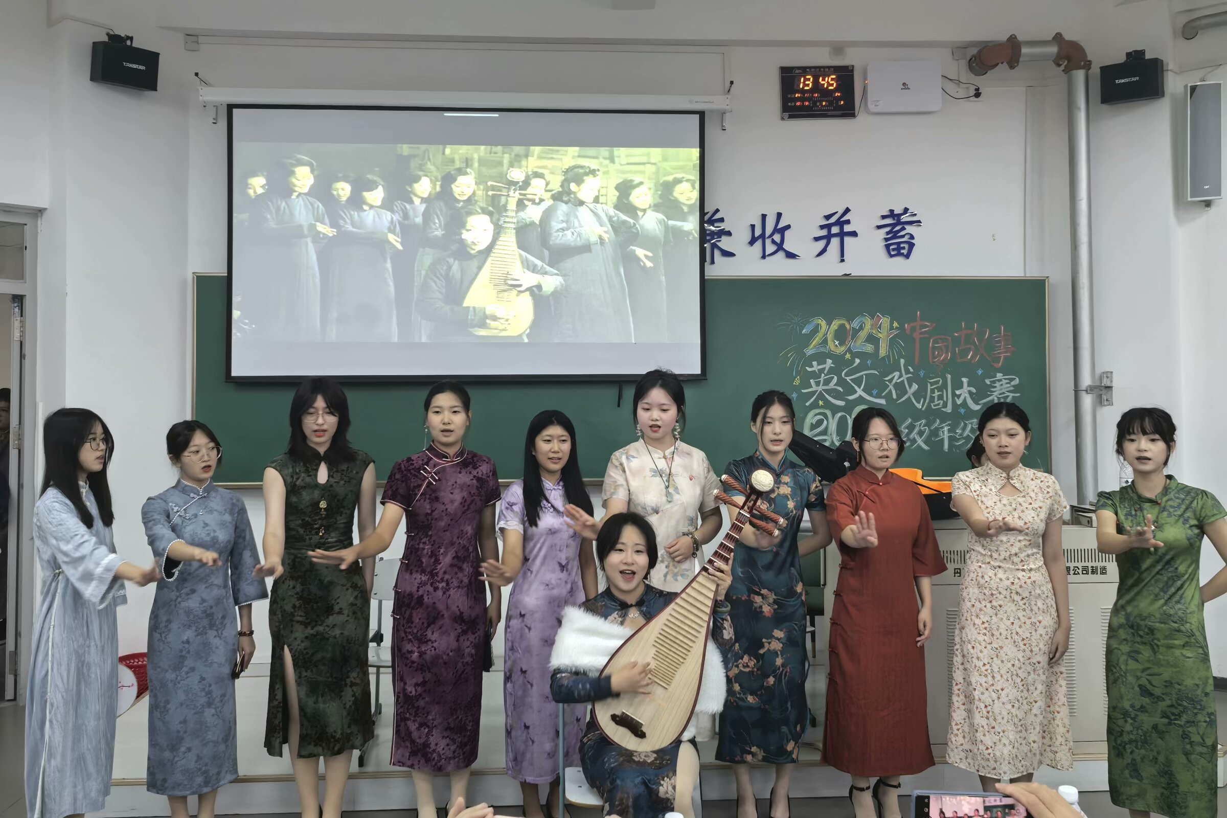 接下来是2024级12班表演的经典剧目《金陵十三钗》。妆容精致、演技精湛的演员们将曲目与表演完美结合,带领大家走进那段战火纷飞的年代,感受硝烟弥漫中绽放出的人性光辉。