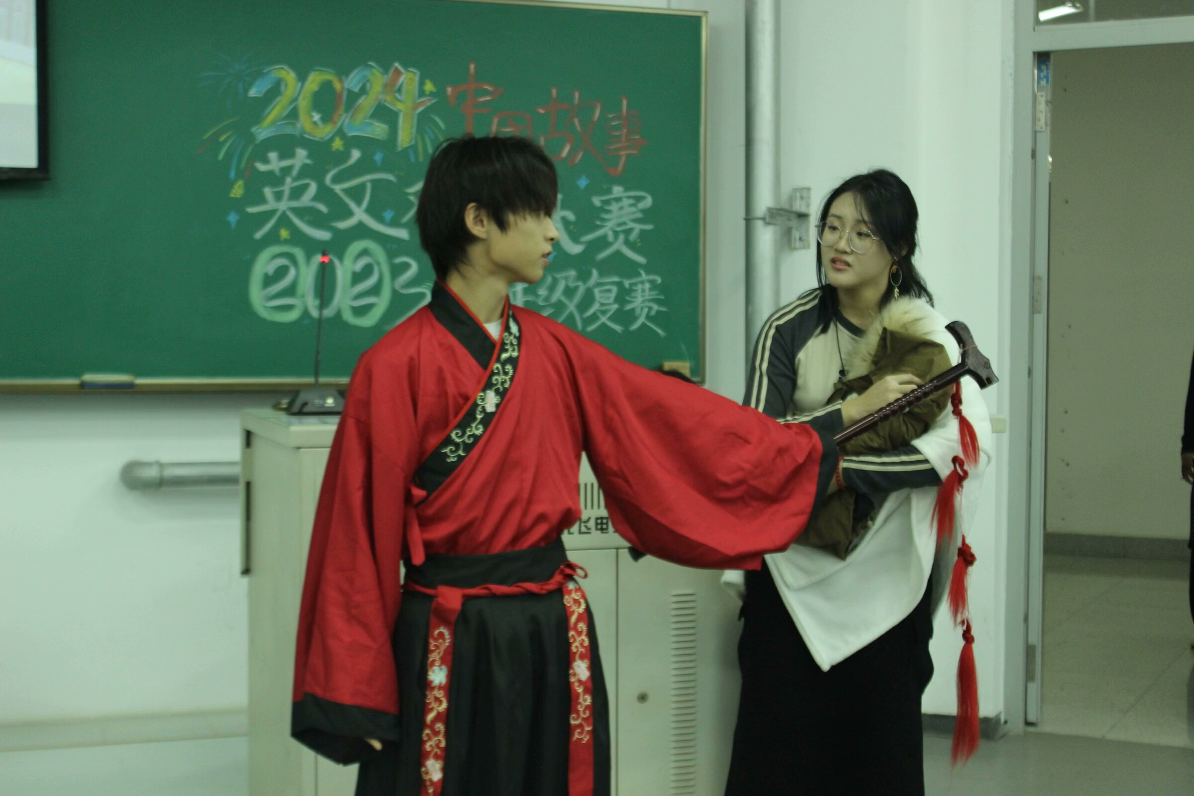 为展示中国经典文学作品的风韵与精神价值,讲好中国故事,推动中华文化走向世界,11月13日下午,英语学院2024年“中国故事”主题英文戏剧大赛2022级、2023级、2024级年级复赛于明德楼成功举办,11月12日中午,研究生组年级复赛于爱尔兰研究中心成功举办。