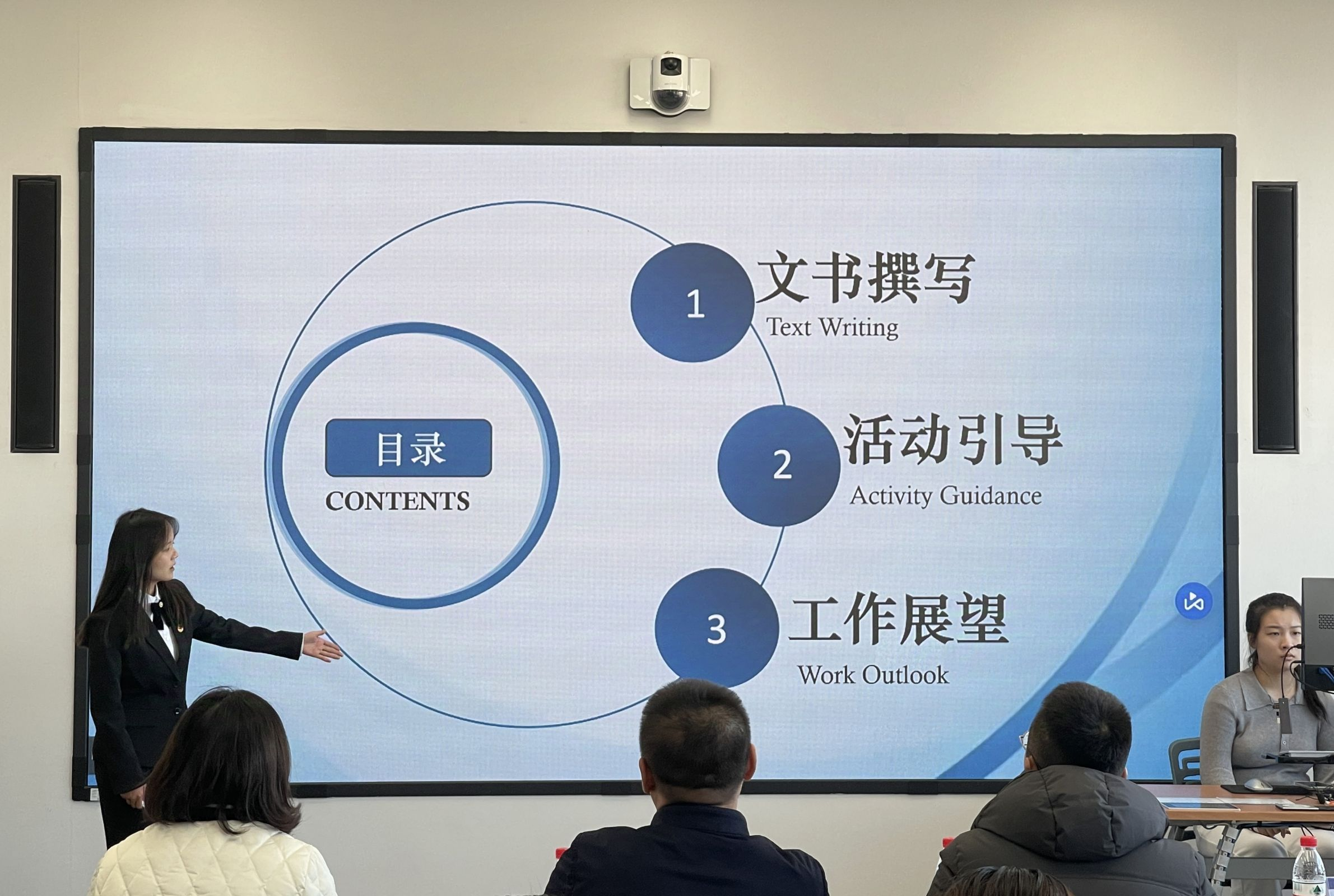 大赛接近尾声,大连交通大学机械工程学院团委书记王衍对此次比赛进行了简单回顾与总结,并提出两校学生干部相互学习、相互进步的美好愿景。在公布各组分数后,英语学院党委副书记兼纪委书记孙硕向远道而来的评委老师们表示衷心感谢,并对参与本次比赛的选手们给予了高度评价与认可,他期望英院学子们能够不断完善自我,充分利用好当下的资源,继续为英语学院作出贡献。