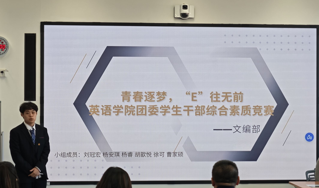为了提高英语学院团干部的综合能力,展示我院学生干部的风采,英语学院团委举办了2024年团干部综合能力大赛。本次比赛从11月27日开始,分为初赛、复赛和决赛三个阶段进行。初赛阶段采取以小组为单位的竞赛形式在各部门内部独立开展,各小组分工明确,进行工作案例分析和工作经验分享,由英语学院第54届团委学生组织主席团及部长级担任评委团成员推优至线上复赛;复赛阶段由2023级辅导员吴曼、第50届新媒体中心主任马睿、第51届新媒体中心主任孔柏惠、第52届学生会执行主席陈琳、第53届学生会执行主席高维泽担任评委进行综合考量与多维度评审,最终选出6支参赛队伍进入决赛。