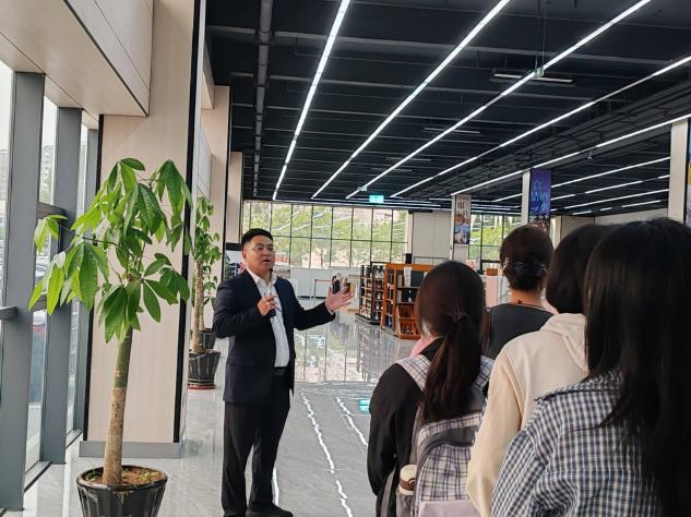 在系统化的参观动线中,师生重点考察了跨境商品展示区、智能仓储中心和公司展区三大功能模块。通过观摩数字化交易系统操作、解析保税仓物流体系,有效衔接了英院学子国际贸易理论与跨境电商实务,重点强化了学生对供应链管理及跨境贸易合规运营等专业核心能力的理解。此外,师生们还与会展中心的管理人员进行了深入交流并进行问题答疑。