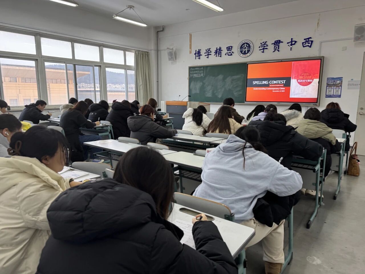 为深入推进习近平新时代中国特色社会主义思想“三进”工作,落实立德树人根本任务,12月15日,英语学院成功举办“理解当代中国”百词听写竞赛(二年级专场)。本次活动由英语学院第二教研室精心策划组织,是学院第二课堂活动的生动实践,也是专业教学与思政育人相融合的创新尝试。