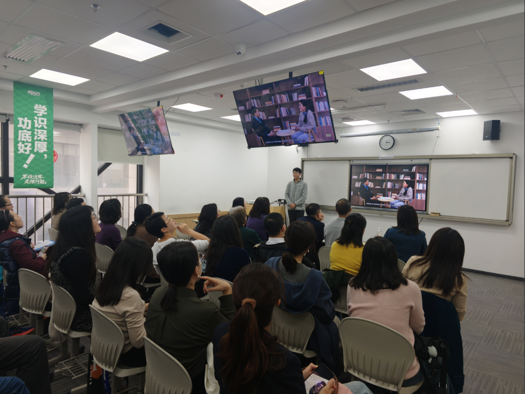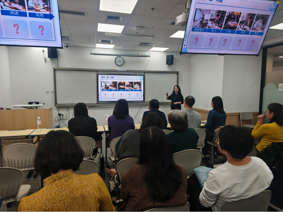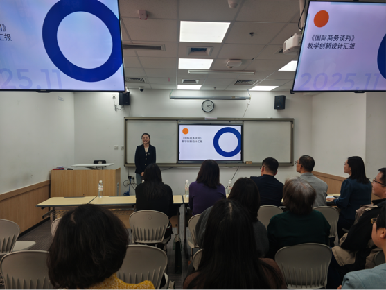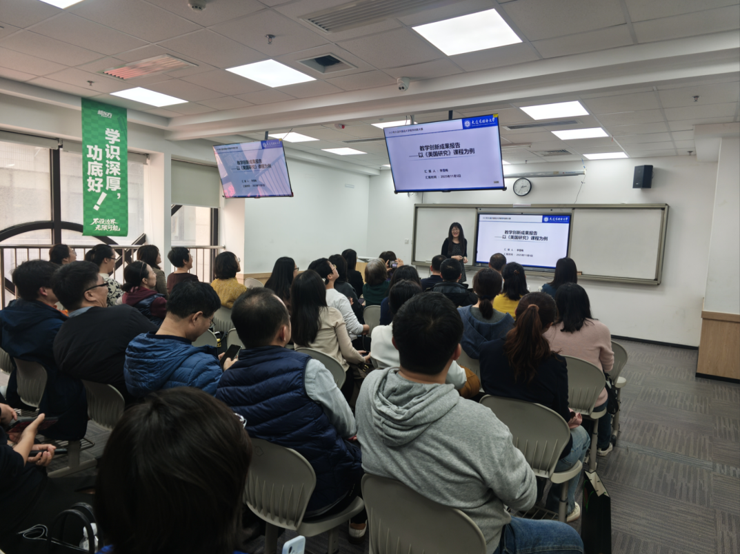 工作坊分为三部分内容。第一部分由参加2025年校级教学创新大赛的李雪梅老师和宋平平老师分别就《美国研究》和《国际商务谈判》两门课程进行说课展示。第二部分由朱效惠老师汇报我院校级教改委托项目《生成式AI赋能〈美国社会与文化〉课程教学创新实践》的阶段性成果。第三部分由在2025年全国外语微课优秀作品征集与交流活动中荣获国家级二等奖、辽宁省一等奖的朱德全老师分享获奖经验和心得。
