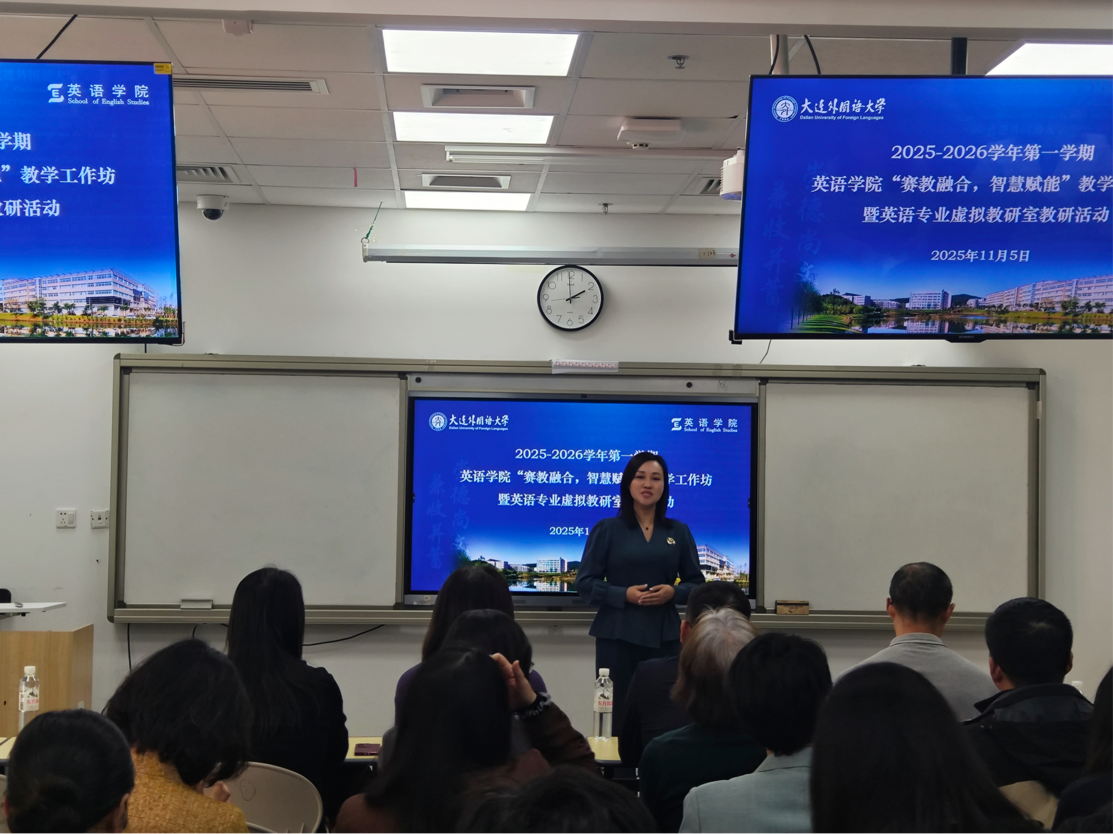 11月5日下午,英语学院召开2025-2026学年第一学期“赛教融合,智慧赋能”教学工作坊暨英语专业虚拟教研室教研活动。工作坊由副院长罗俏鹃主持,全体教师参加。