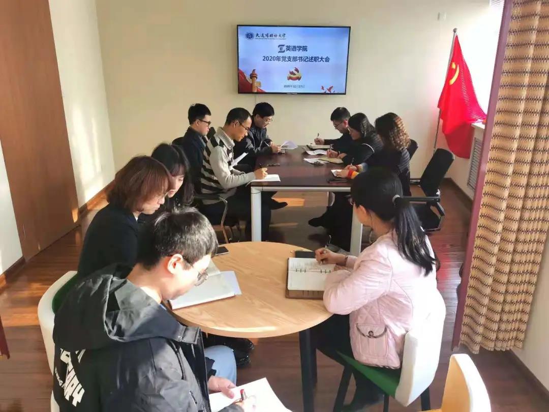 按上级组织部门要求,为加强英语学院党支部能力建设,回顾总结过去一年党支部的工作内容,对新一年的党支部工作作出设想,英语学院于12月17日召开2020年党支部书记述职大会。出席本次会议的有党委副书记梁若冰、教工第二党支部书记曲涛、本科生党支部书记曲镜达、党委委员刘晓晖、郭庆霞、教工第一党支部书记王成东、研究生党支部书记黄新智。