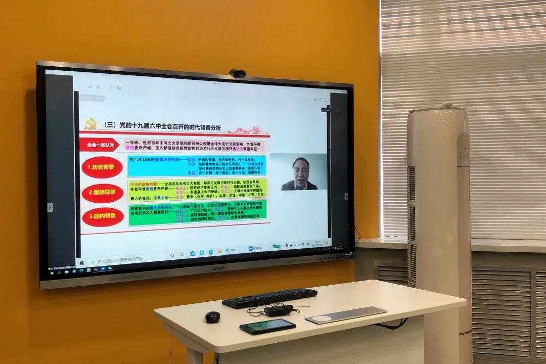 疫情期间,在校工作的领导老师与部分党员观看“深刻学习领会党的十九届六中全会精神”公益直播。通过直播,党员们从历史、国际、国内三个背景层面明确了此次会议召开的时代背景,并深刻领悟其内涵与精神,统一了思想、意志与行动,凝聚了共识。以史为鉴,可知兴替,在新时代新征程上,党员们定能坚定理想信念,牢记初心使命,助力我党的巍峨巨轮行稳致远。