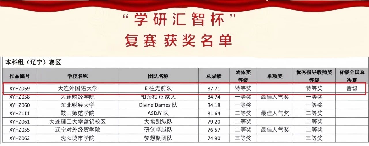 2024年9月20日,在英语学院陆文玥老师的指导下,由李孟容、张翼鹭、董峻豪、亢美霏、李文超、雷攀云六名同学组成的英语学院代表队荣获第四届“学研汇智杯”全国高校商务外语综合能力大赛(微视频作品赛项)省级复赛辽宁省赛区特等奖,并最终晋级国赛,为六十周年校庆献出来自英院学子的贺礼。
