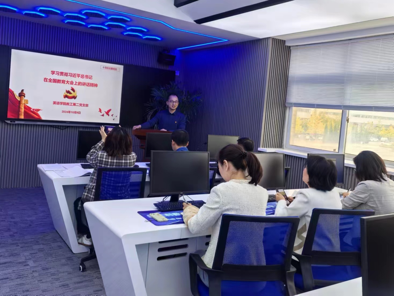 为深入贯彻落实学校党委的工作部署,10月9日下午,英语学院各支部组织党员开展了以“学习贯彻习近平总书记在全国教育大会上的重要讲话精神”为主题的党日学习活动。