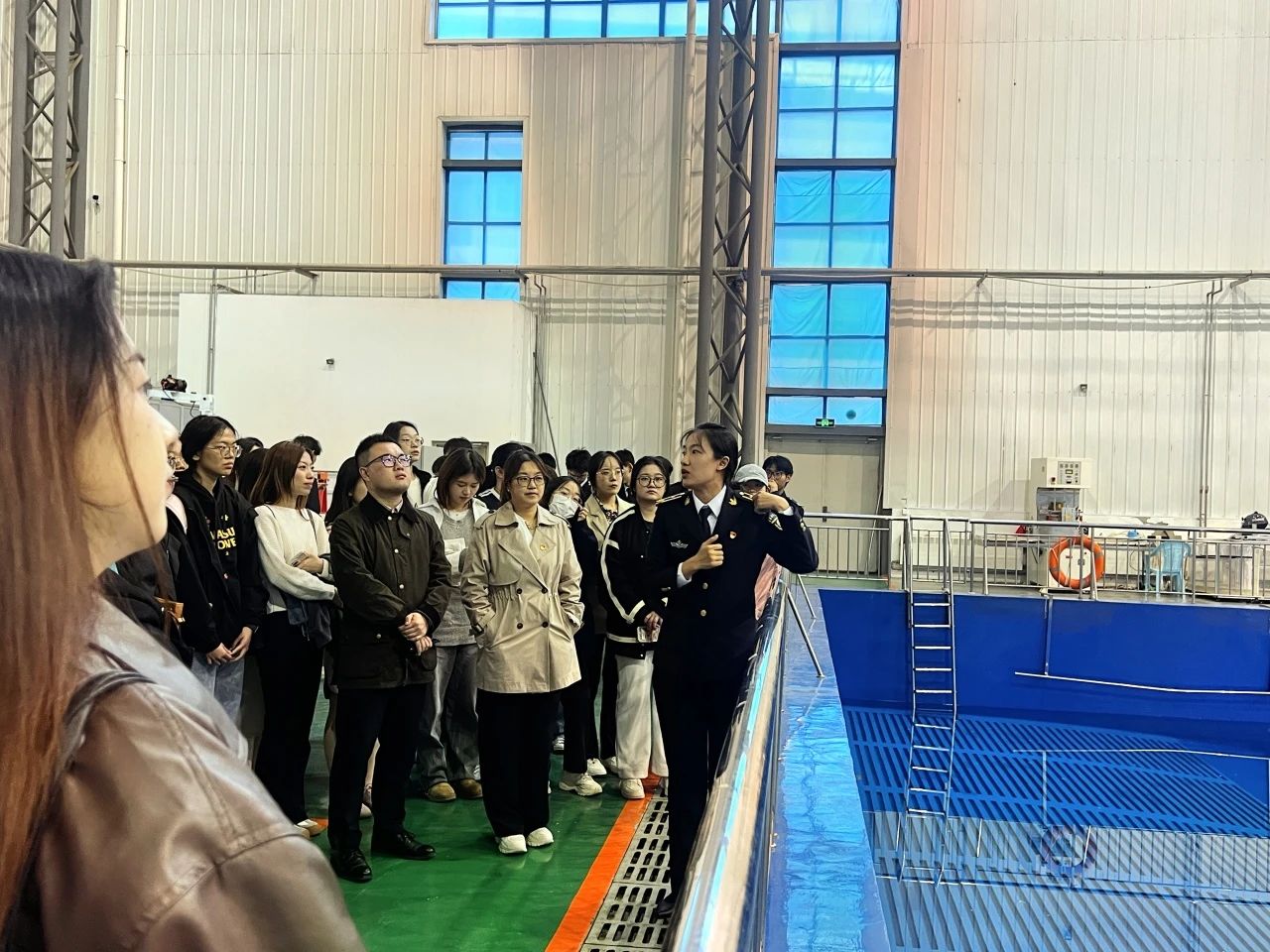 英语学院本科生第一党支部一行还参观了大连海事大学图书馆,并在半军管文化长廊观看了学校宣传片,深入了解大连海事大学的建校历史。在救捞实验室,船舶与海洋工程学院研究生学生党支部书记王宏诗为党支部成员讲解相关知识,并展示了实验室的运转过程。