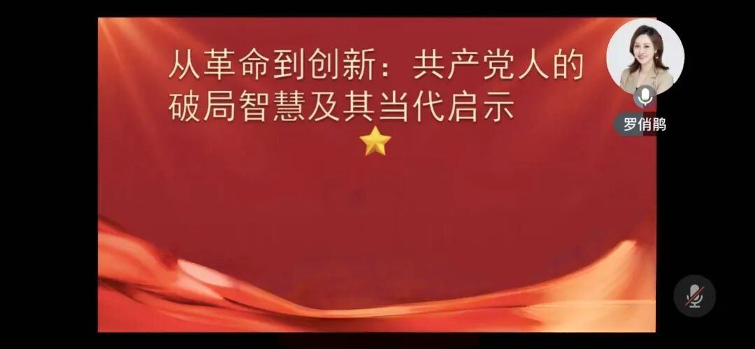 在第七讲的课堂上,英语学院副院长罗俏鹃为同学们带来《从革命到创新:共产党人的破局智慧及其当代启示》专题课程,揭示了共产党人的破局智慧,彰显其对当代的深刻启示。罗院长以党史三大创新突破为切入点,向同学们介绍了中国共产党的伟大征程。此外,罗院长讲授了创新方法论,引导同学们树立坚定不移的理想信念,培养创新精神。通过展示青年党员创新实践的成功案例,罗院长鼓励同学们秉持创新精神,勇于开拓新领域,肩负起新时代赋予青年的历史使命。