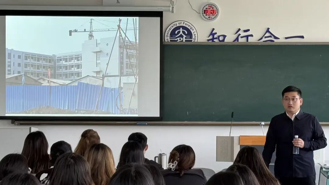 在第一讲的课堂中,英语学院党委书记梁若冰借由18年前的老照片带大家重温新校区的建设中蕴含的不懈进取、脚踏实地的实干精神。梁书记从实际案例出发,提出共产党员要有底线思维,要深入群众。针对共产党员的建设使命,梁书记深入阐释其内涵,着重强调共产党员应坚守纯粹信仰、勇担时代重任。梁书记殷切期待全体学员坚定信念,始终践行全心全意为人民服务的根本宗旨,勇担时代赋予的重任。