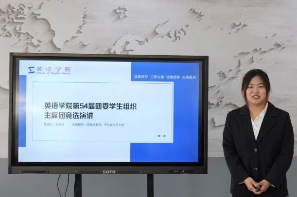 团委学生组织主席团候选人围绕工作经历、岗位理解、未来规划等方面展开竞选演讲,表现出学生干部应有的担当精神与服务意识,以及用更多实干成绩为英语学院团委学生组织增光添彩的信念与决心。演讲结束后,孙硕副书记在充分肯定第53届学生干部工作的同时也对新一届主席团成员寄予厚望。他希望第54届主席团能够充分发挥榜样作用,积极迎接未来的挑战,以更加饱满的热情和动力,共同书写新一届英语学院学院团委学生组织的崭新篇章。