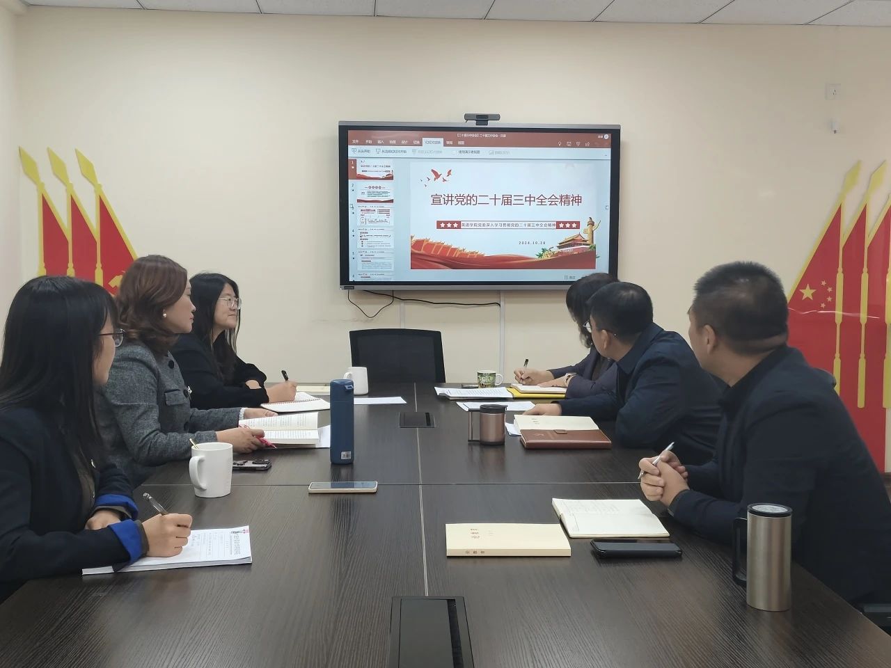 为深入贯彻落实学校党委的工作部署,10月28日,英语学院党委理论学习中心组开展党的二十届三中全会集中学习,会议由梁若冰书记主持并宣讲,学院党委理论学习中心组成员参加会议。