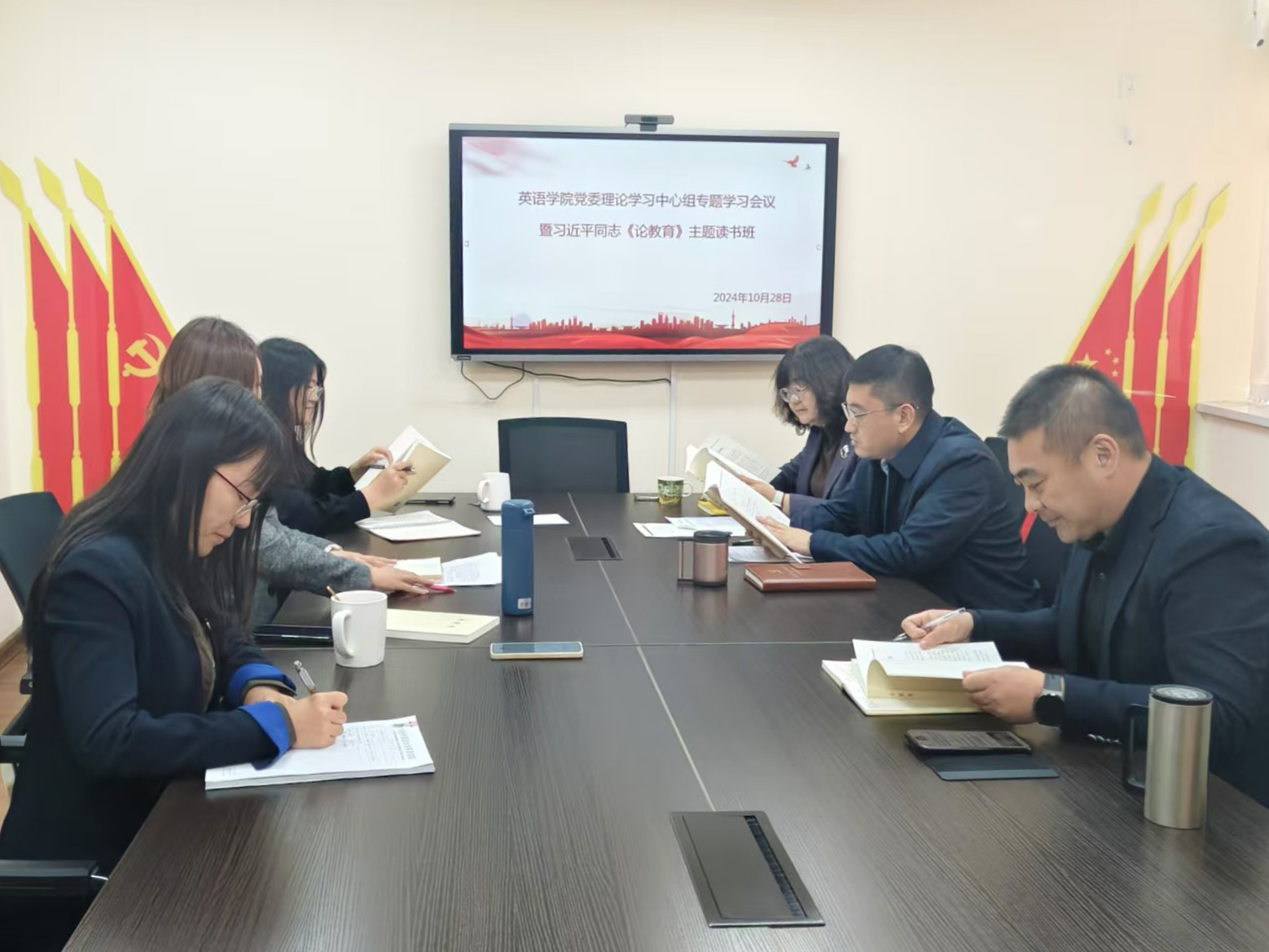 为深入贯彻落实学校党委工部署,10月23日,英语学院党委理论学习中心组开展习近平同志《论教育》主题读书班,深入学习贯彻习近平同志《论教育》、习近平总书记重要讲话和全国教育大会精神等。学院党委理论学习中心组成员参加会议,党委书记梁若冰主持会议。