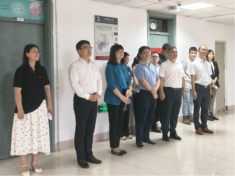 为喜迎祖国74周年华诞,深入学习贯彻习近平新时代中国特色社会主义思想和党的二十大精神,进一步增强英语学院“E”站社区研究生功能型党支部的凝聚力、号召力和战斗力,在校党委组织部、校党委学生工作部的大力支持和指导下,9月27日下午于5E宿舍楼二楼中厅召开英语学院“E”站社区研究生功能型党支部服务启动仪式。英语学院党委梁若冰副书记,英语学院党委副书记、院长吕春媚,党委副书记兼纪委书记孙硕,英语学院教工第二党支部书记、副院长曲涛,英语学院副院长刘晓辉,英语学院教工第一党支部书记、英语学院副院长王成东,研究生党支部书记黄新智,本科生第一党支部书记曲镜达,本科生第二党支部书记王艺凝、辅导员吴曼、达尼亚尔江·亚力坤江、李延奇老师以及英语学院“E”站社区研究生功能型党支部和研究生党支部成员共同参加本次仪式,仪式由英语学院研究生功能型党支部书记韩秀同志主持。
