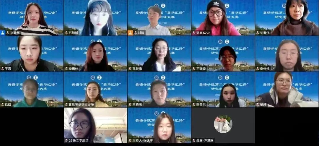 为积极响应中国特色大国外交话语体系建设,切实推进“三进”工作走实走深,培养满足人才强国战略需求的高素质语言服务人才,英语学院于12月9日举办第二届“英华汇译”研究生口译比赛。本次比赛得到我院口译俱乐部刘春伟老师、刘清老师和李锡纯老师的大力支持,赛前为选手们提供了专业指导,同时担任此次比赛的评委。英语学院2021级、2022级多名研究生踊跃参与了比赛。