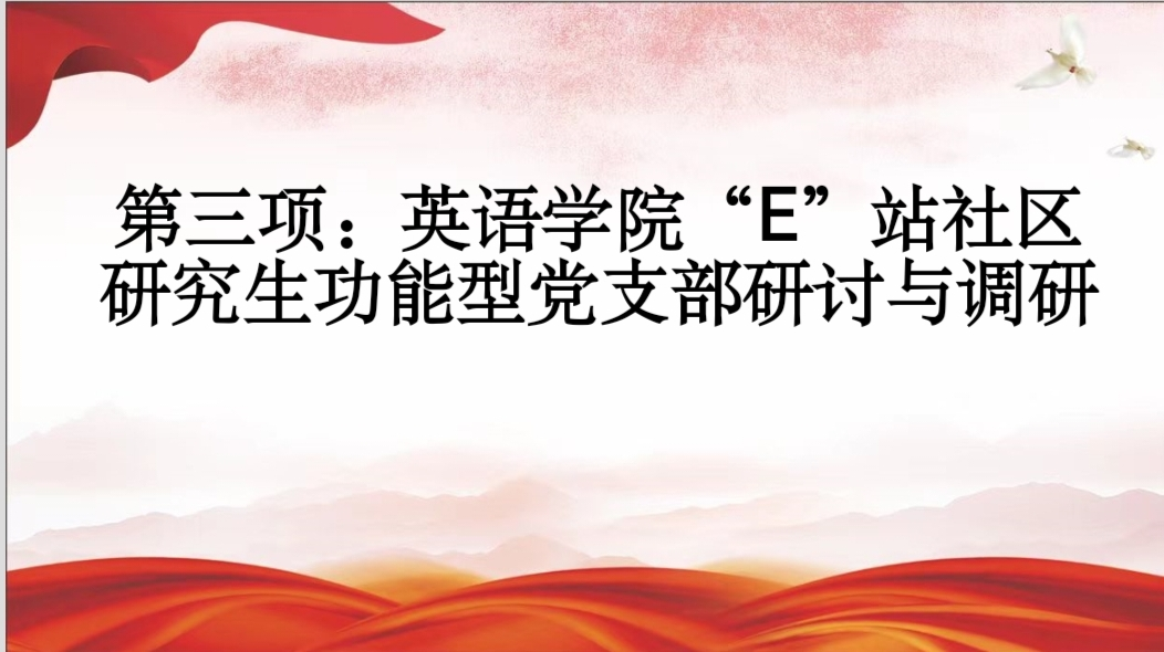 在“七一”建党节来临之际,我院“E”站社区研究生功能型党支部于2023年7月1日开展本支部第一次工作会议。本次会议由英语学院“E”站社区研究生功能型党支部支部书记韩秀老师主持,该支部全体党员同志共同参加本次会议,本次会议分为三项议程。