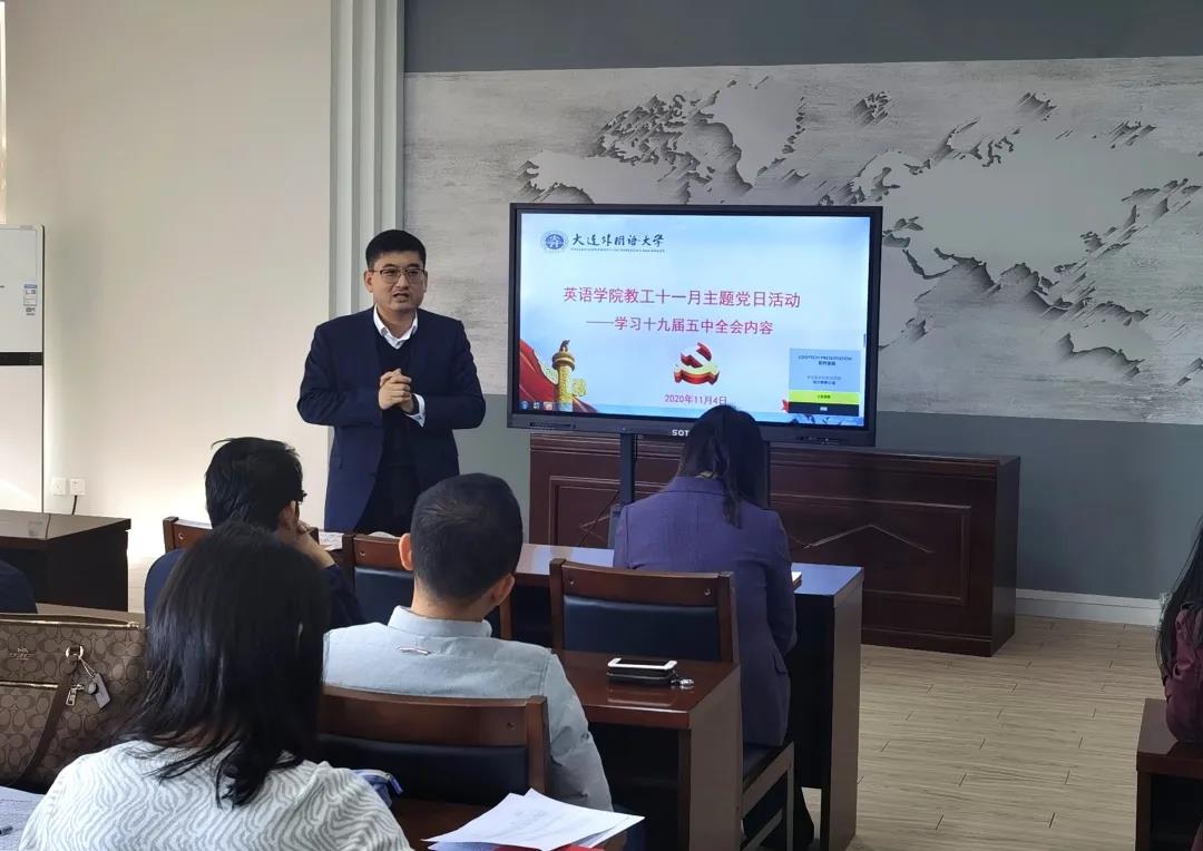 11月4日,英语学院党委副书记梁若冰就十九届五中全会为党员教职员工召开专题研讨交流会。