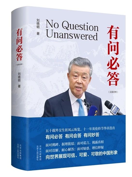 刘晓明大使始终关心着国家外交事业,积极参与国际事务的讨论和研究,为我国的外交政策和国际关系发展贡献智慧。他的丰富经验和远见卓识,持续在我国外交外事领域持续发挥着重要作用,著有《尖锐对话》《大使讲中国故事》《有问必答》《大使讲中英关系》。