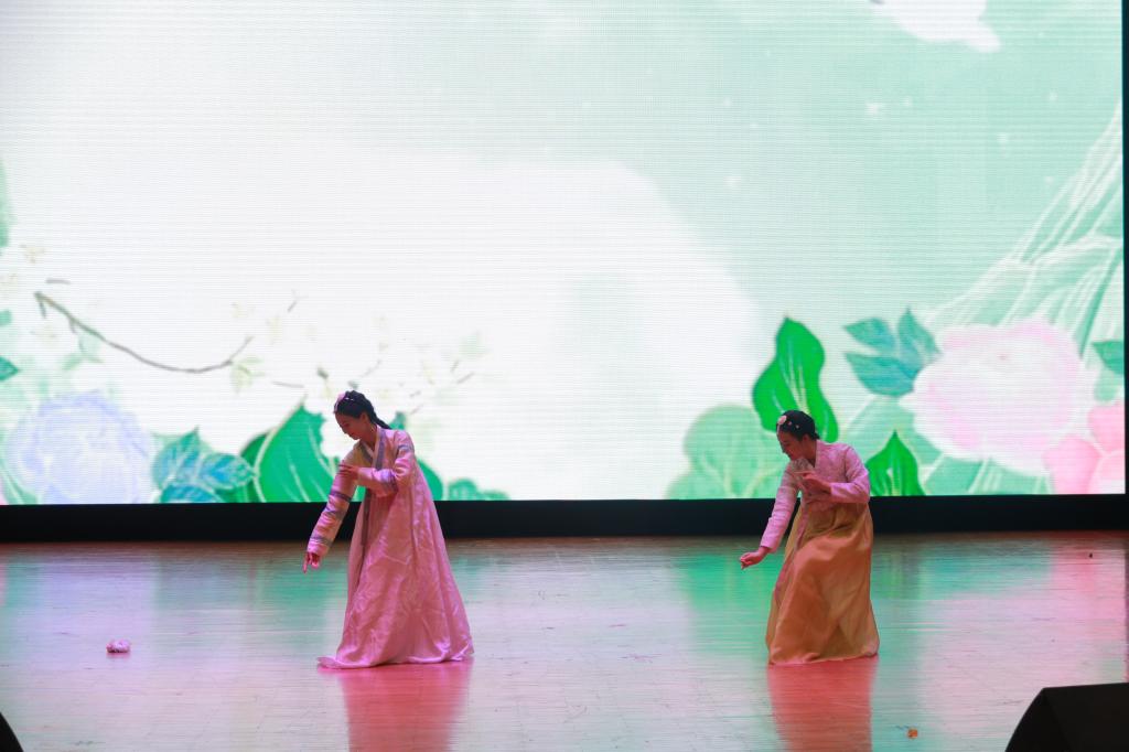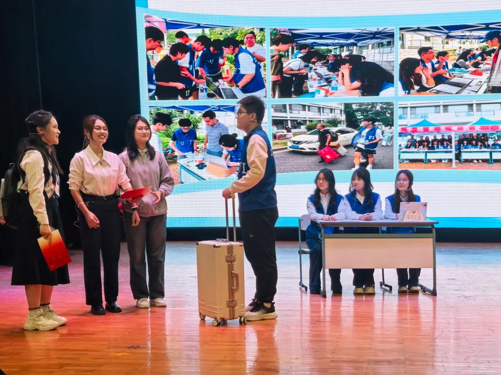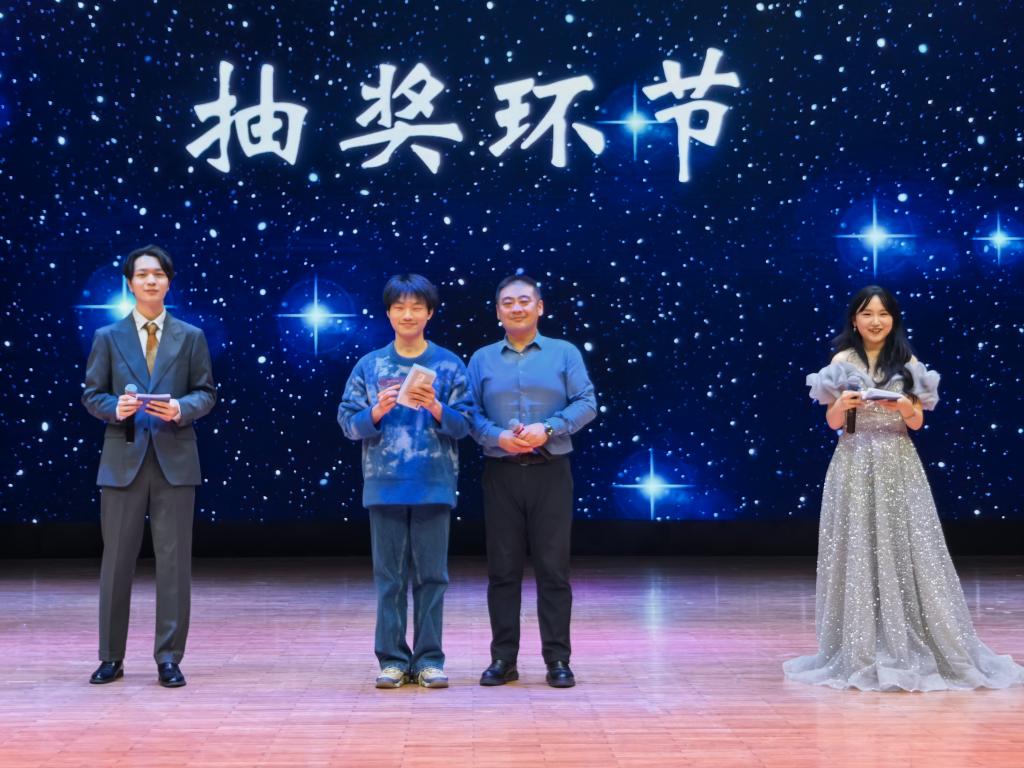 本次文艺嘉年华由流行舞蹈《Killin' It Girl》拉开帷幕,炫酷律动爆发出的极致张力点燃全场。接下来由The Seekers乐队带来表演《Falling Slowly+What Makes You Beautiful》,美妙的音乐使同学们沉醉其中。随后,一场歌曲串烧《时光机》带大家重温金曲,活力四射的流行舞蹈《FANCY》引爆热情,而别有韵味的戏曲歌唱《新霸王别姬》则带来了独特的艺术震撼。此后,优雅的《古典舞蹈串烧》仿佛让人穿越时空,英语配音《爱宠大机密》则以惟妙惟肖的表演收获了满堂欢笑与掌声。至此,第一阶段的“铭刻·青春长河”展演结束,激动人心的抽奖环节展开,由2025级辅导员达尼亚尔江·亚力坤江和团委书记兼2023级辅导员曲镜达抽取幸运观众。