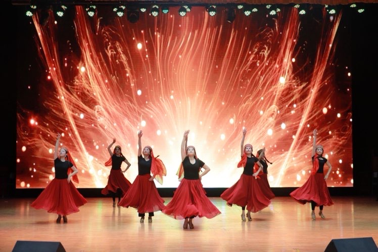 嘉年华的第三部分“奔赴·星辰大海”在稍事休息后开展。少数民族风情浓厚的塔吉克舞蹈《恰普素孜》展现帕米尔高原之美,热血沸腾的rap《决爱·尽》、幽默诙谐的情景剧《后宫风云之皇上今天带谁出宫》赢得掌声雷动,由2025级辅导员达尼亚尔江·亚力坤江和2025级学生干部为大家带来的歌曲《有我》深深打动了大家,用饱含力量的歌声传递出青年一代的责任与担当,歌曲《爱情公寓+相亲相爱》暖心动听。至此,英语学院第三届文艺嘉年华暨2025级新生迎新晚会在绚烂烟火中圆满结束。