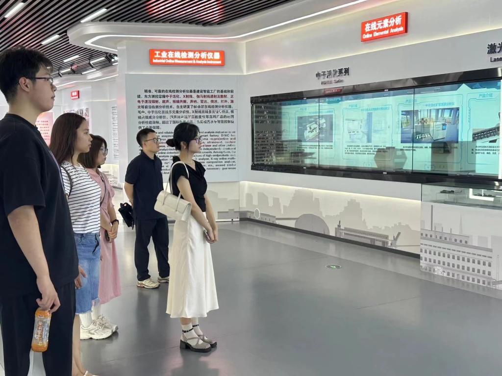 在走访过程中,曲镜达老师一行受到了东方测控集团有限公司的热情接待。在走访东方测控仪器仪表工业园区的过程中,负责人详细介绍了东方测控集团的智能装备、云技术服务平台等数字化设施,我院师生认真聆听,亲身体验到了东方测控浓厚的创新氛围,并深入感受了现代企业的运营模式及行业前沿动态。随后,英院师生参观了东方测控企业展示中心,学生们对于东方测控的企业文化、市场定位以及未来发展规划有了更进一步的认识,对企业的发展历程和行业地位有了更加直观的了解。